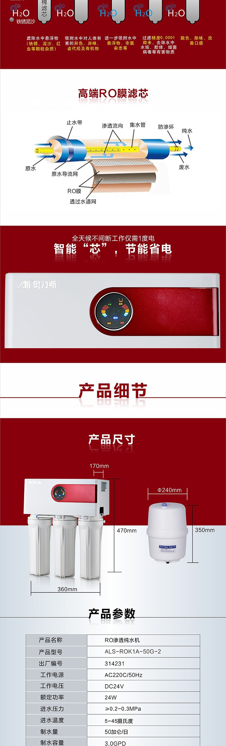 ◆ 五级反渗透智能过滤系统,高效滤除重金属、细菌、杂质、余氯、胶体等,饮水更安全,更卫生,更健康。