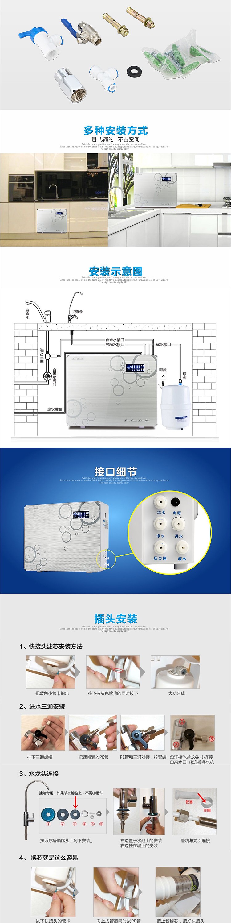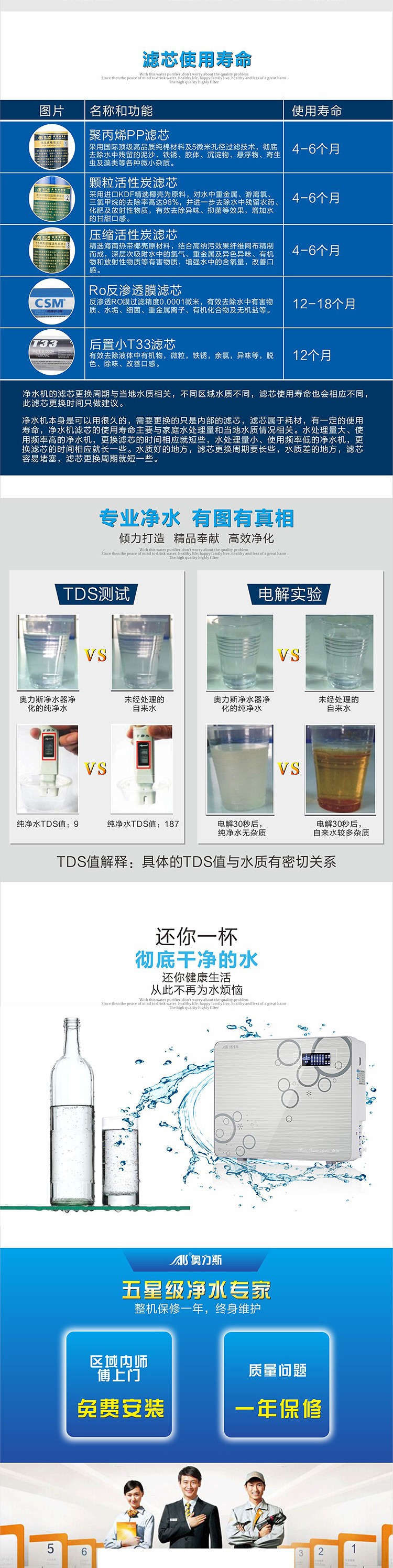 安全简便:全部水路通道采用食品级管道,耐高温,耐腐蚀,让客户用的更加放心,易拆装滤芯,有效减少二次污染。并符合国家卫生净水标准。